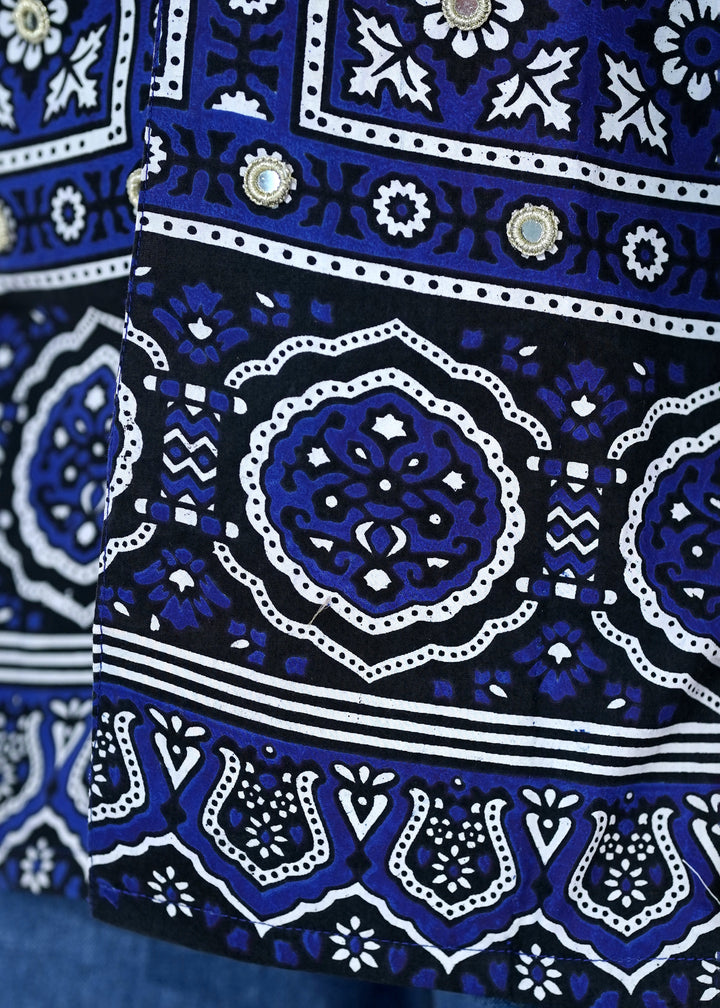 This relaxed, boxy-fit shirt jacket is crafted from authentic blue Ajrak cotton, featuring a button-down front and full sleeves. Light mirror work adds subtle embellishment, making it versatile enough to pair with denim for a casual statement or black trousers for a polished look. A celebration of heritage reimagined for the modern woman.